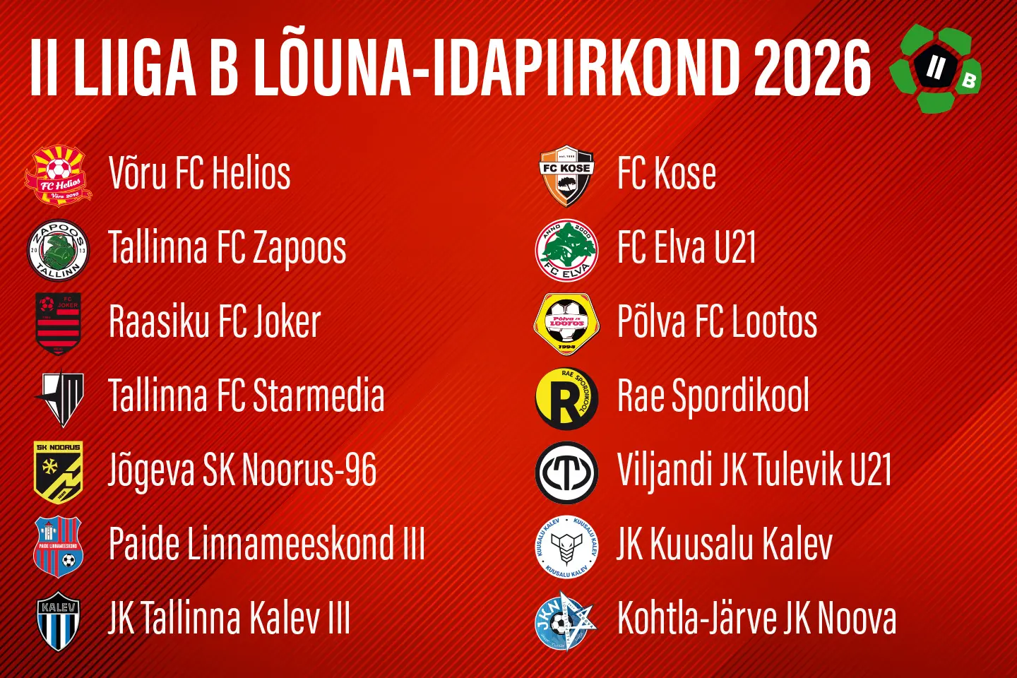 Selgunud saanud meie meeskonna tänavused vastased II liiga B-tasandi lõuna-idapiirkonnas. Loe edasi…